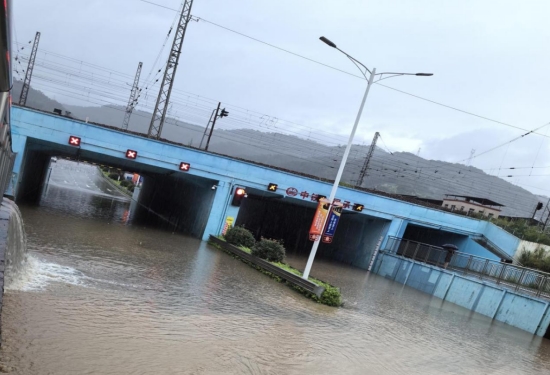 經(jīng)過(guò)現(xiàn)場(chǎng)察看,由于短時(shí)間降雨量太大,龍津河水位暴漲高于通道出口頂標(biāo)高,河水倒灌至下穿通道導(dǎo)致交通中斷,下穿通道水泵房三臺(tái)水泵全部啟動(dòng)抽水也無(wú)法滿足排水要求。公司防汛小組到達(dá)現(xiàn)場(chǎng)后,連夜組織人員拉好警戒線,設(shè)置警示標(biāo)志,防止車輛進(jìn)入下穿通道,并調(diào)度4輛應(yīng)急車輛及時(shí)排水并清洗路面;同時(shí),提前與鐵路部門、交警部門聯(lián)系,暫時(shí)封閉該段線路。經(jīng)過(guò)6小時(shí)的不斷抽水,路面已基本暢通,搶險(xiǎn)過(guò)程未發(fā)生任何險(xiǎn)情和人員傷亡。