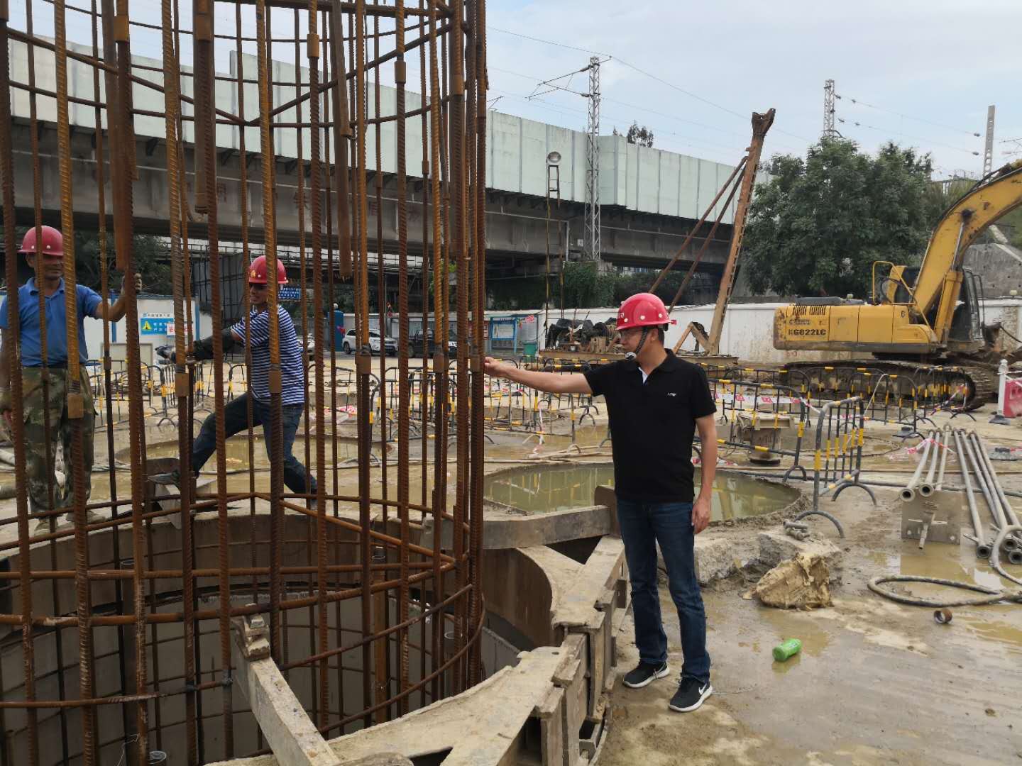 427日,在龍巖火車站片區(qū)路網(wǎng)項(xiàng)目工地,犀牛路二期正在進(jìn)行樁基、承臺(tái)和立柱施工,站前高架橋正在進(jìn)行墩柱和混凝土現(xiàn)澆梁施工,一派熱火朝天的建設(shè)場(chǎng)景,39歲的龍巖國(guó)資企業(yè)干部孔華剛剛榮膺2018年“福建省勞動(dòng)模范”,從福州開完表彰會(huì)載譽(yù)歸來(lái)的顧不上休息,馬不停蹄地深入站前高架橋和犀牛路二期項(xiàng)目一線,檢查安全文明施工情況,督促項(xiàng)目施工進(jìn)度。