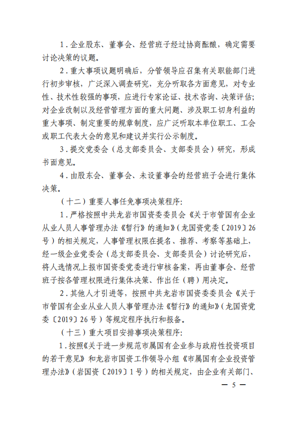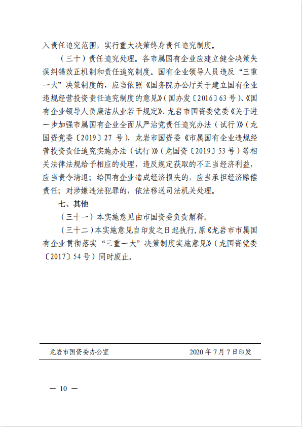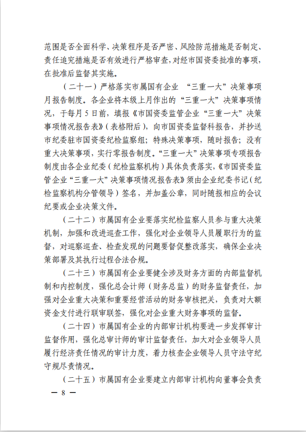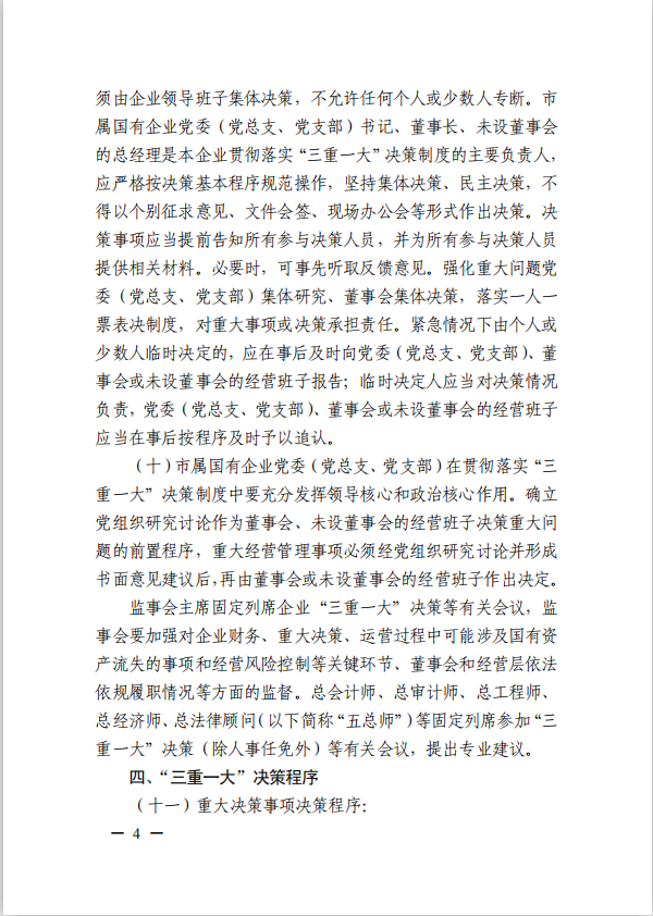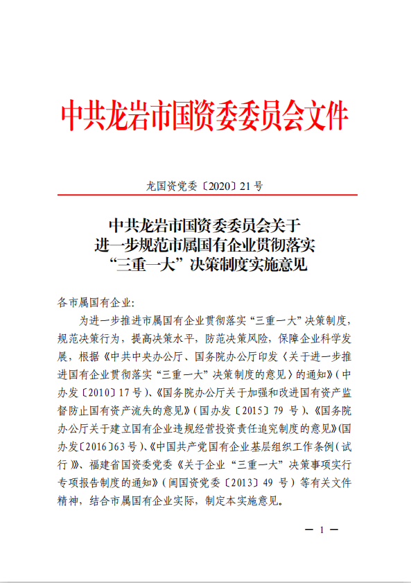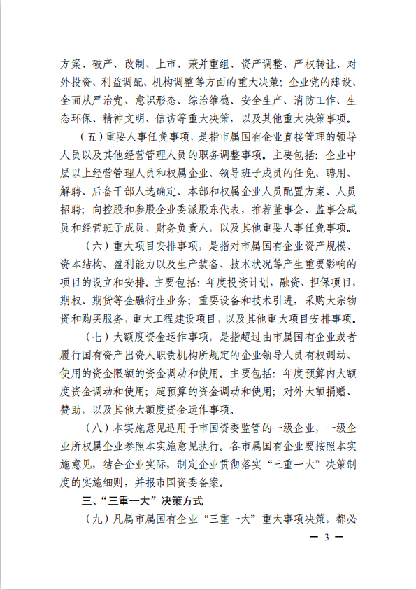 關(guān)于進(jìn)一步規(guī)范市屬國有企業(yè)貫徹落實“三重一大”決策制度實施意見(國資黨委[2020]21號)
