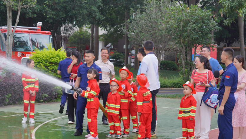 活動(dòng)現(xiàn)場(chǎng),在消防講解員的帶領(lǐng)下參觀了消防車輛,講解了消防器材裝備,并就發(fā)生火災(zāi)如何報(bào)警、如何正確使用滅火設(shè)施、如何撲救初期火災(zāi)、如何引導(dǎo)人員疏散逃生等一系列內(nèi)容進(jìn)行講解。面對(duì)小朋友們新奇的提問(wèn),消防救援人員都做出了詳細(xì)的解答,滿足了孩子的好奇心??吹较儡嚭瓦@些多樣的器材裝備,小朋友們紛紛上前體驗(yàn),想要成為一名模范“消防員”。在消防知識(shí)競(jìng)賽階段,小朋友們踴躍回答,現(xiàn)場(chǎng)氣氛達(dá)到高潮。